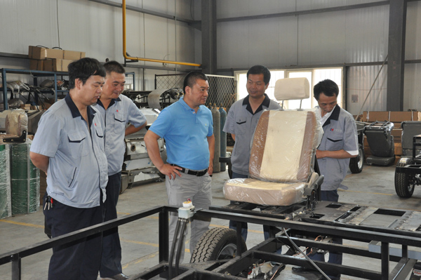 首先,王軍杰董事長在核昌公司楊昭副總經理等人陪同下參觀了生產車間,詳細了解了目前的生產情況,并就電動清掃車生產進行了詳細交流。