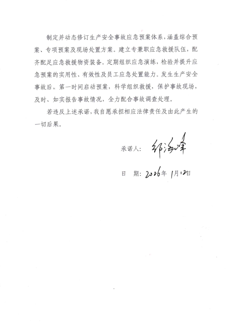 二一〇所主要負責人安全承諾書