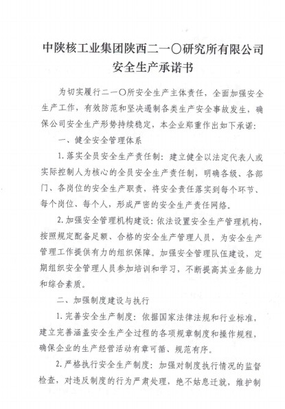 二一〇所安全生產(chǎn)承諾書